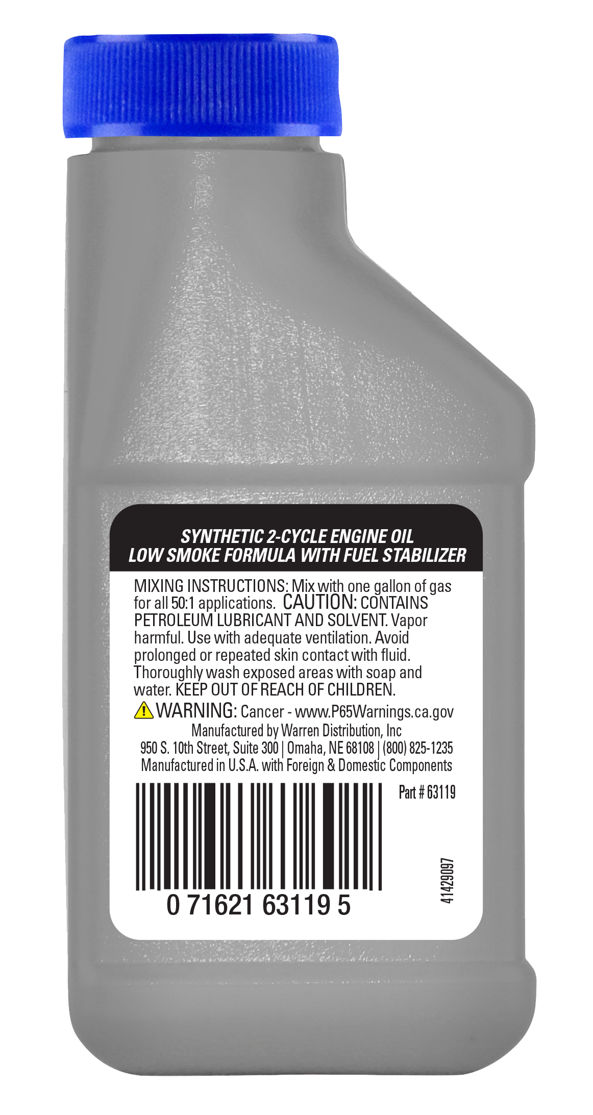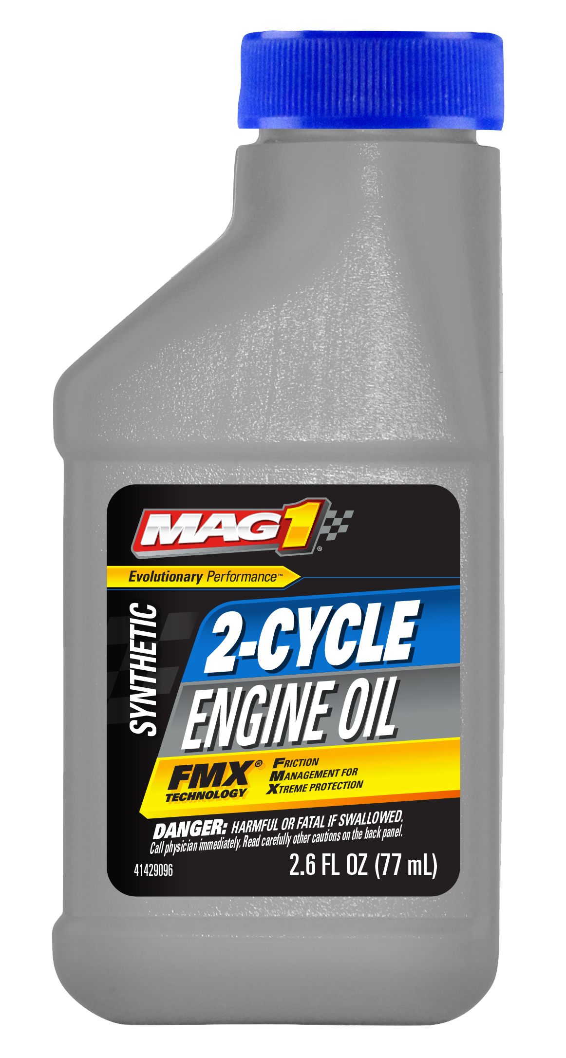 MAG 1® Full Synthetic Universal 2-Cycle Oil is formulated for superior engine protection and low smoke with 100% pure full synthetic base oil and high performance additives. Designed for use in high-performance air-cooled 2-cycle engines such as lawn mowers, string trimmers and chain saws.