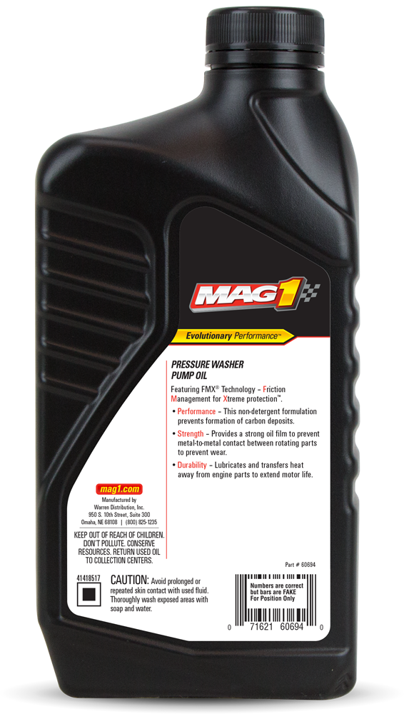 MAG 1® Pressure Washer Pump Oil is a multi-purpose pump lubricant that resists foaming and aeration. Protects against rust and oxidation.