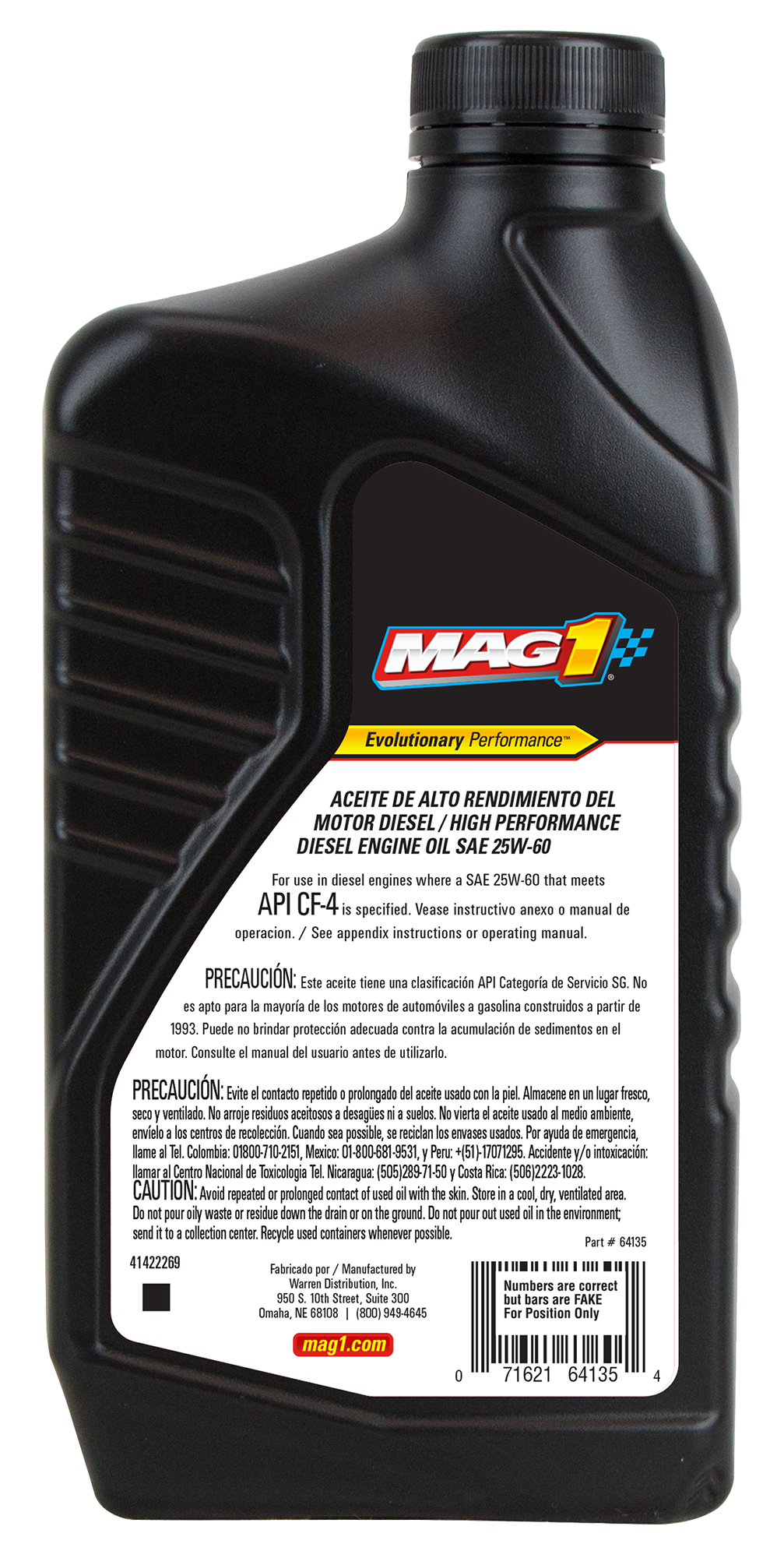 MAG 1 Conventional 25W-60 CF-4 is technologically advanced heavy duty diesel engine oil that provides excellent protection and performance, including the following benefits: