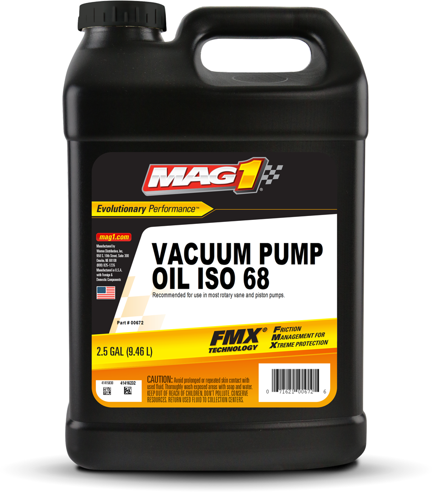 MAG 1® Vacuum Pump ISO 68 Oil is specially formulated with only the finest quality, hydrotreated, high viscosity index, paraffinic base oils and the most advanced and rigorously tested additive system to deliver unsurpassed protection and performance.