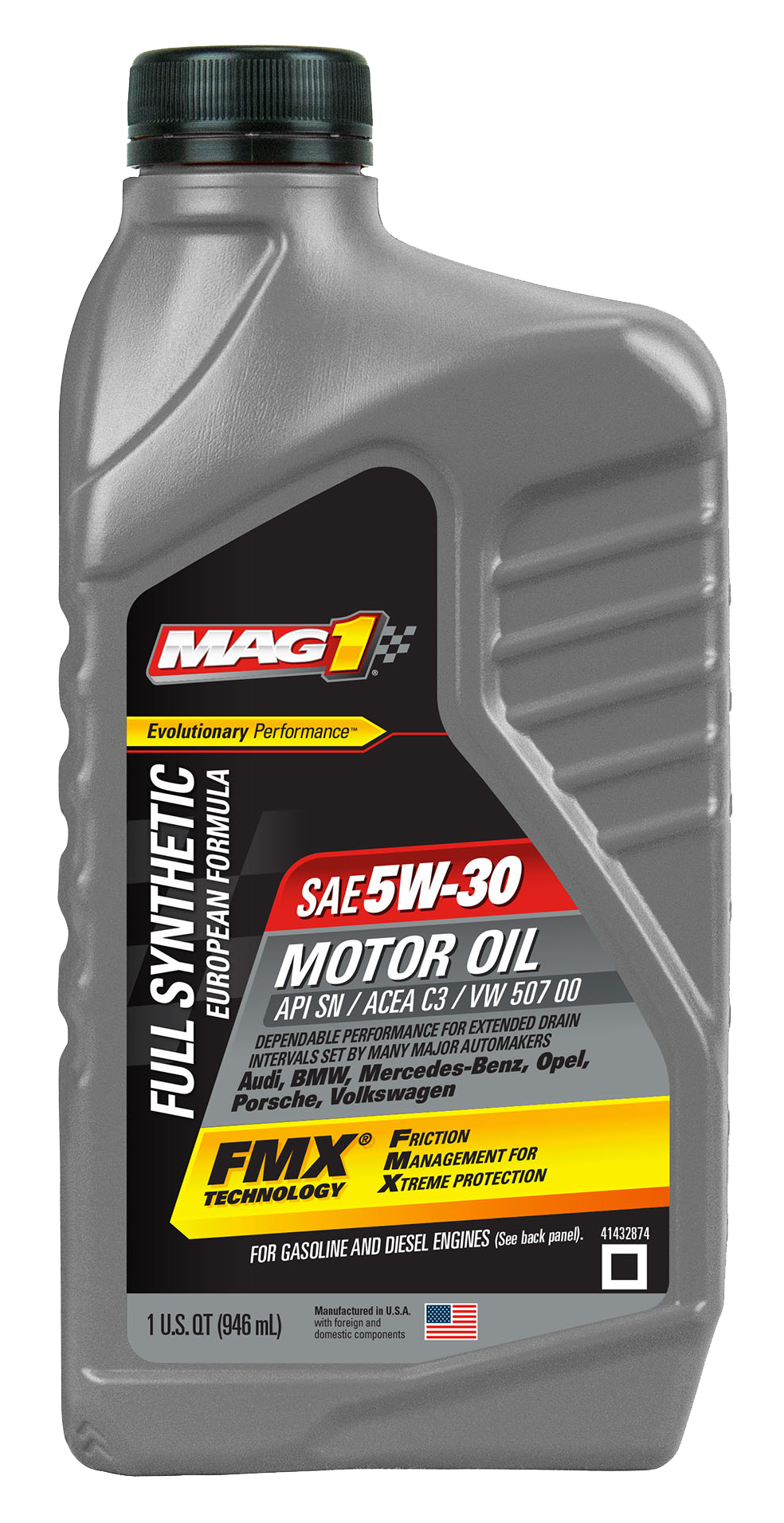 MAG 1® Full Synthetic European 5W-30 C3 VW507 Motor Oil is our purest formulation and provides outstanding fuel economy. It delivers unsurpassed protection and performance, including the following benefits: