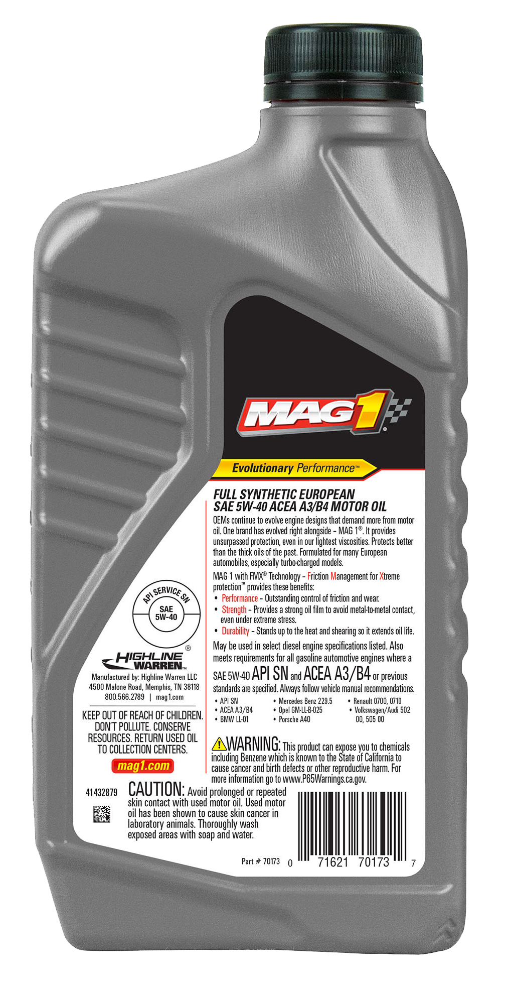 MAG 1® Full Synthetic European 5W-40 A3-B4 Motor Oil is our purest formulation and provide outstanding fuel economy. It delivers unsurpassed protection and performance, including the following benefits: