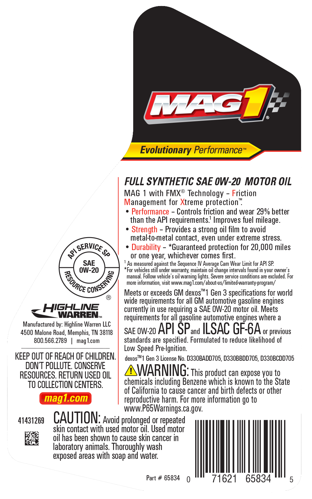- MAG 1 Full Synthetic 0W-20 Motor Oil meet or exceed GM dexos1™ Gen 3 specifications for worldwide warranty requirements for all GM automotive gasoline engines currently in use. The oils are fully licensed by GM.