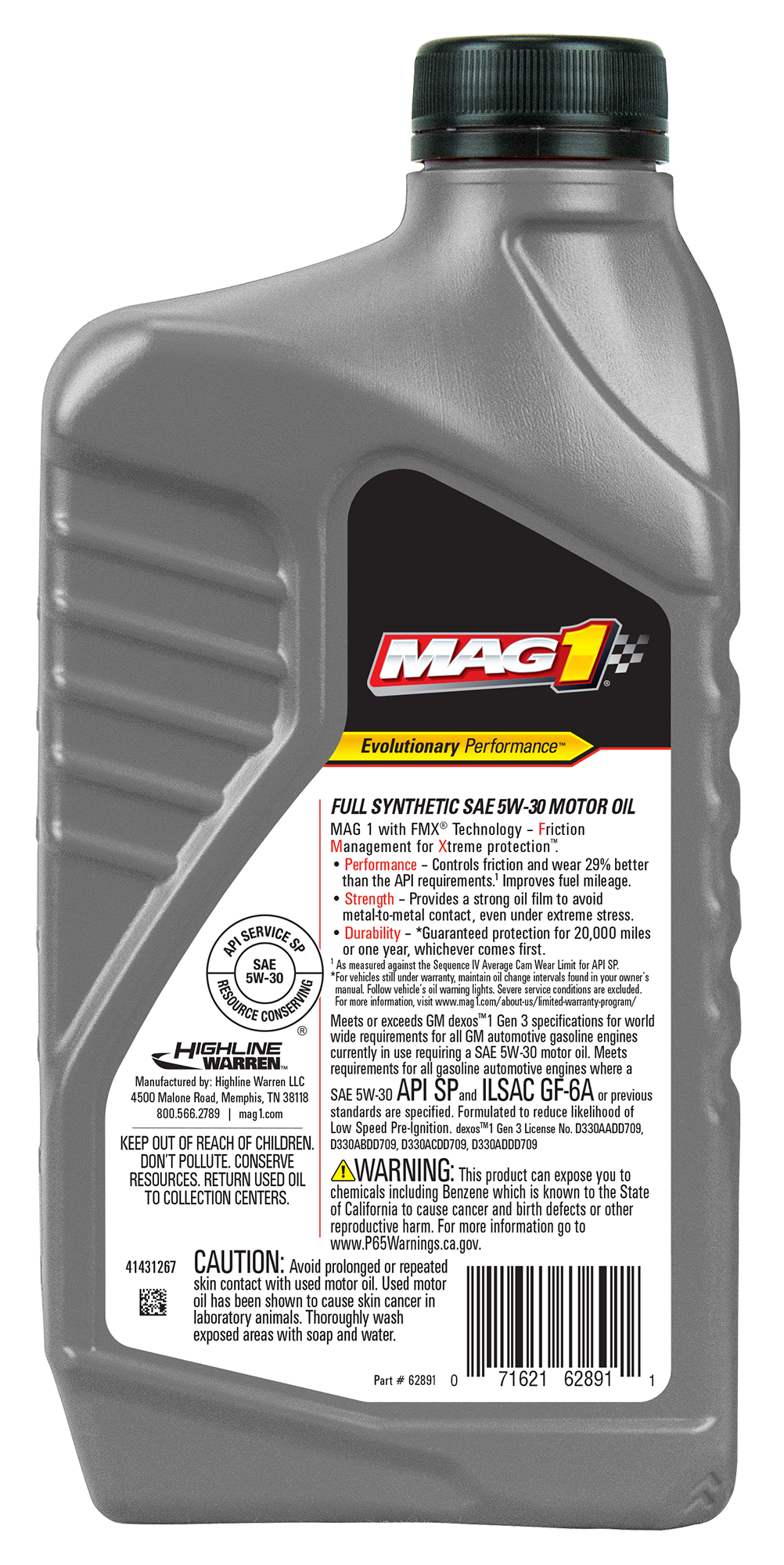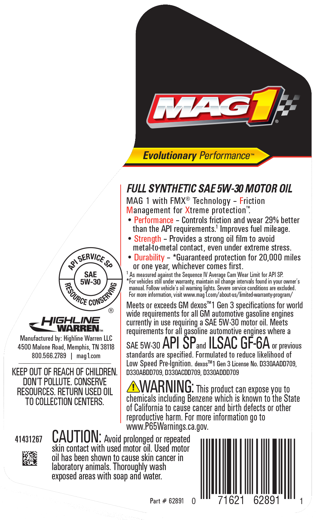 - MAG 1® Full Synthetic 5W-30 Motor Oil meet or exceed GM dexos1™ Gen 3 specifications for worldwide warranty requirements for all GM automotive gasoline engines currently in use. The oils are fully licensed by GM.