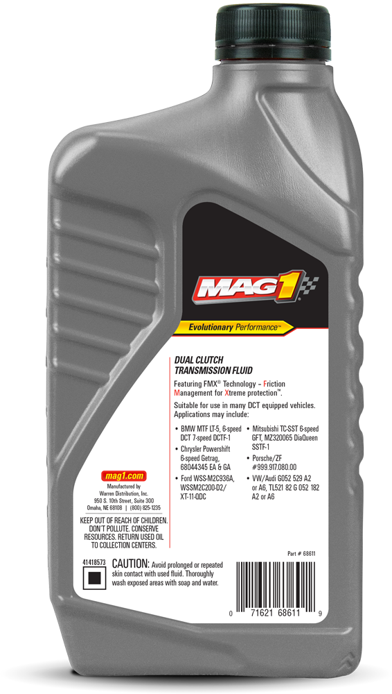 MAG 1 Full Synthetic Dual Clutch Transmission Fluid featuring FMX® Technology – Friction Management for Xtreme protection™ is for service fill applications on a wide range of European, Asian and American vehicles equipped with wet Dual Clutch Transmission. MAG 1 DCT fluid has demonstrated robust performance in both industry/OEM testing as well as extensive field testing.