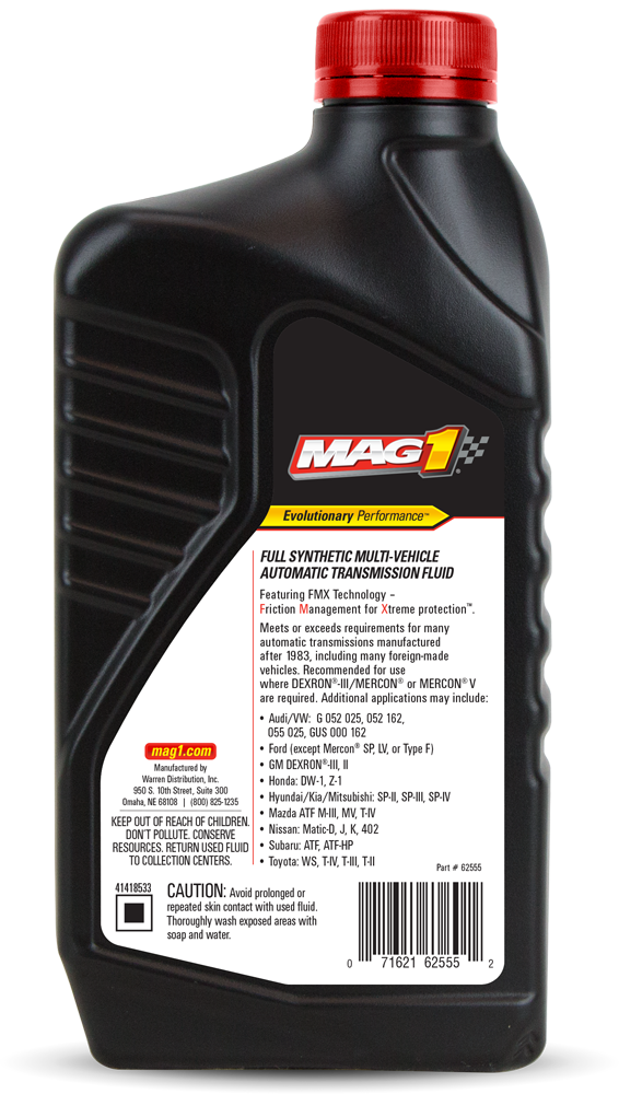 MAG 1® Multi-Vehicle Automatic Transmission Fluid is engineered to extend transmission life and smooth operation of many automatic transmissions from a variety of OEMs.