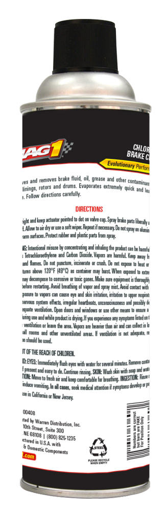 MAG 1® Premium Chlorinated Break Cleaner removes brake fluid, grease, oil and other contaminants from brake linings and drums. It also stops disc brake squeal. It can be applied without disassembling the brake unit. Tests conducted by an independent research laboratory show that the proper use of MAG 1 Premium Brake Parts Cleaner can help improve brake performance.