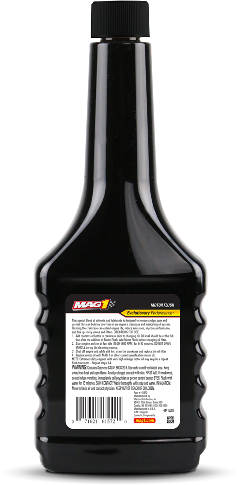 Specially blended formula of solvents and lubricants is designed to remove sludge, gum and varnish that can buildup over time in an engine’s crankcase and lubricating oil system. Flushing the crankcase can extend engine life, reduce emissions, improve performance, and free up sticky valves and lifters.