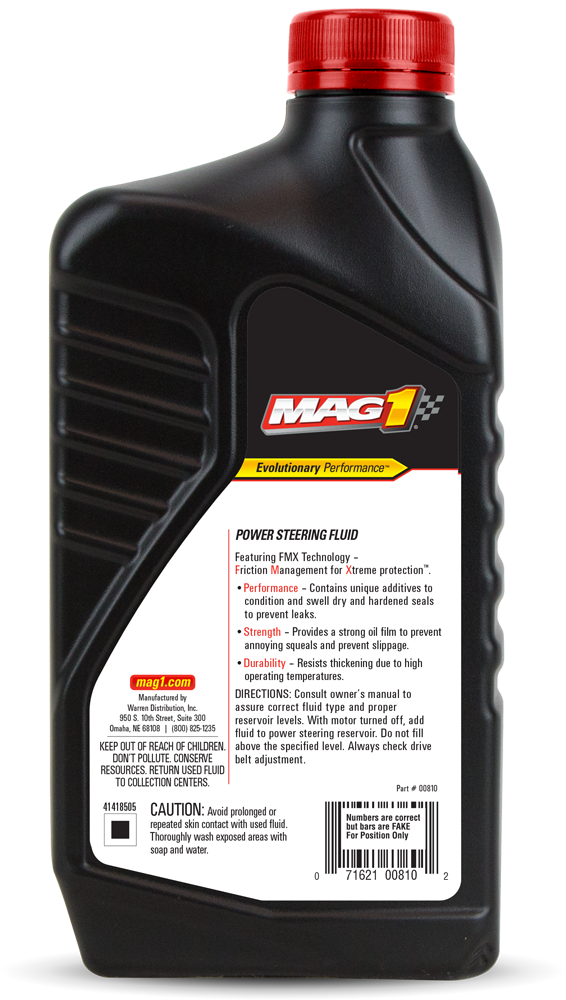 MAG 1® Power Steering Fluid is recommended for reservoir top off, but not complete refill. Benefits of MAG 1 Power Steering Fluid include:
